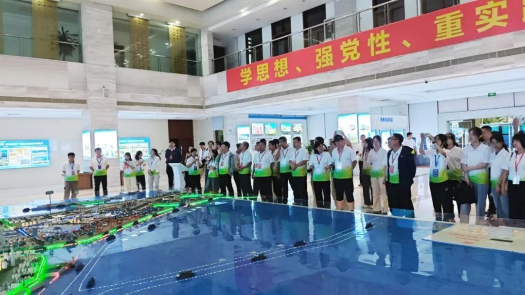 最后,实习队伍来到中国-马来西亚钦州产业园区进行考察学习。自2012年开园以来,中马钦州产业园区积极响应习近平总书记提出的将“两国双园”打造成为中马两国投资合作的旗舰项目、中国—东盟合作的示范区和陆海新通道的重要节点的发展定位。园区为推动中马经贸合作及双方全面战略伙伴关系的发展作出了积极贡献,并在高质量共建“一带一路”和构建中国—东盟命运共同体方面进行了积极探索。实习师生在园区负责人的介绍下,通过观察沙盘模型,进一步认识到中马钦州产业园区的区位优势及平陆运河建设对广西对外开放的重要意义。