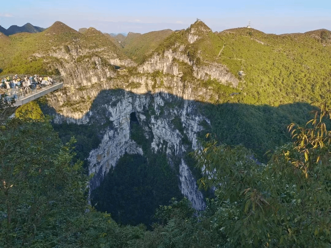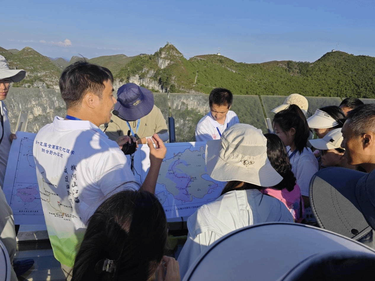 乐业天坑群是由特大型与大型天坑组成的地貌景观,地理特征典型,被誉为“世界天坑博物馆”。本次实习主要考察了乐业天坑群中的大石围天坑及大石围天坑东峰的马峰洞。南宁师范大学的卢炳雄老师为同学们讲解了大石围天坑区域的地质背景和构造运动,还介绍了该区域地下河系统,并通过提问引导同学们思考天坑形成与地下河的关系。