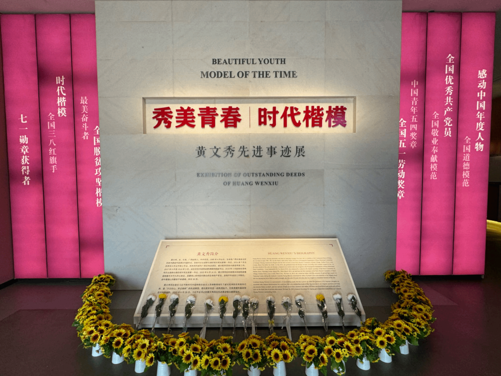仪式结束后,队伍首先来到黄文秀优秀事迹展。黄文秀同志从北京师范大学取得研究生学位后,放弃大城市的工作机会,毅然回到家乡,在脱贫攻坚第一线倾情投入、奉献自我,用美好青春诠释了共产党人的初心使命,谱写了新时代的青春之歌。她的故事,如同一股清泉,滋润了同学的心田,激励着大家将个人理想融入国家和民族的事业之中,争做新时代的奋斗者。