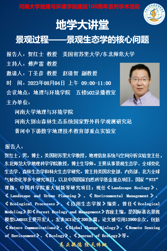 地学大讲堂“景观过程——景观生态学的核心问题
