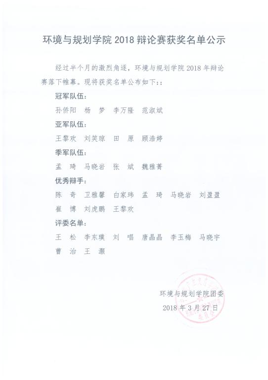 【公  示】环境与规划成人漫画 2018辩论赛获奖名单公示