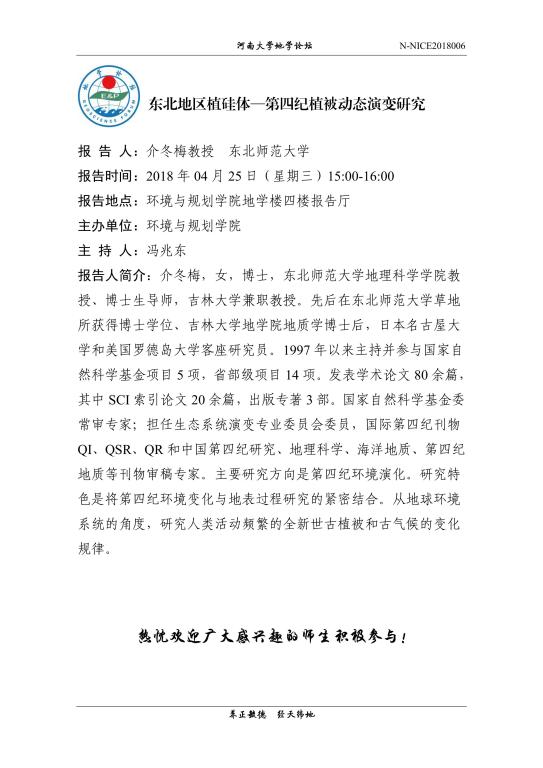 【地学论坛】介冬梅:东北地区植硅体—第四纪植被动态演变研究 (时间:4.25,15:00-16:00)