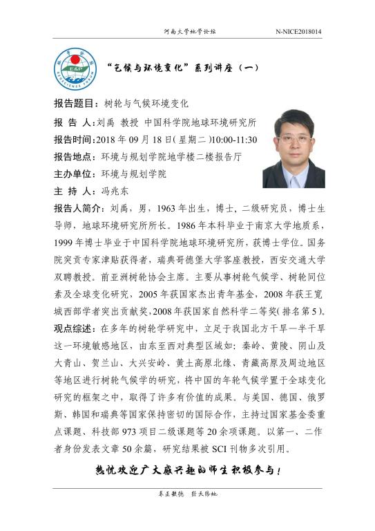 【地学论坛】气候与环境变化系列讲座(一):树轮与气候环境变化(时间:9.18,时间调整至15:00-16:30)