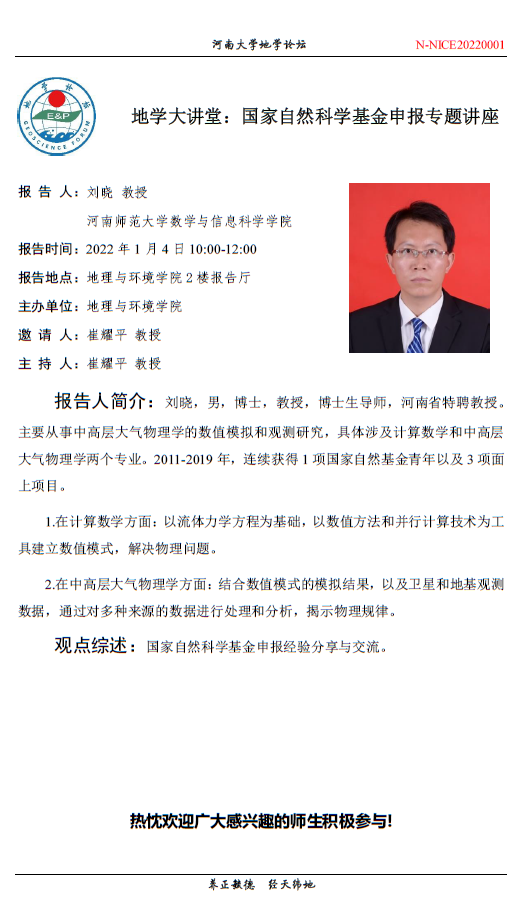 【地学论坛】地学大讲堂:国家自然科学基金申报专题讲座
