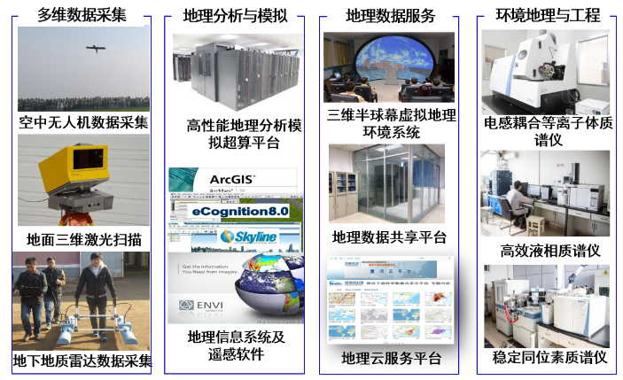 经过多年建设,实验室的基础条件获得较大改善,已经形成了仪器设备配备比较完善的地理学研究技术平台,具备了大规模资源环境数据采集、分析、管理、共享与应用的能力和实验基础,总体上居全国同类实验室先进水平。