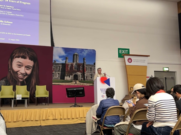 随后,师生们参加ISEH ICEPH和ISEG环境与健康联合会议,在此实习队与戈韦尔大学教授张朝生合影留念。