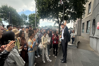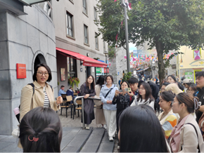 随后,师生们前往戈尔韦市中心进行 city walk 。在爱尔广场,孔令德导游向大家讲述了爱尔兰十四大家族的兴衰史,以及这些家族对当地文化的影响。
