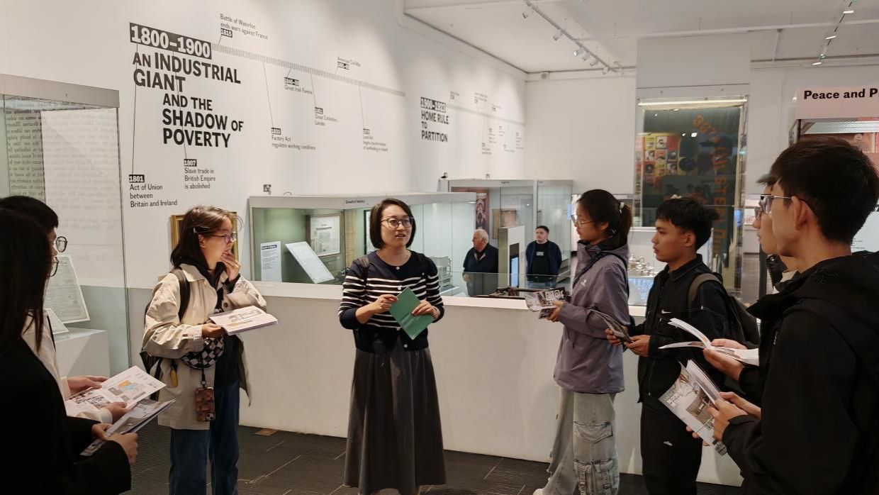 当地时间上午10点,实习队师生参观了贝尔法斯特著名的阿尔斯特博物馆(Ulster Museum)。该博物馆成立于1891年,拥有丰富的艺术、历史和自然科学展品,展示了北爱尔兰从古至今发展过程中丰富的自然历史和文化遗产。师生们通过实地参观,深入了解了北爱尔兰的地理风貌、历史沿革和社会变迁,加深了同学们对该地区地理特征、社会经济发展及与自然环境互动关系的理解。