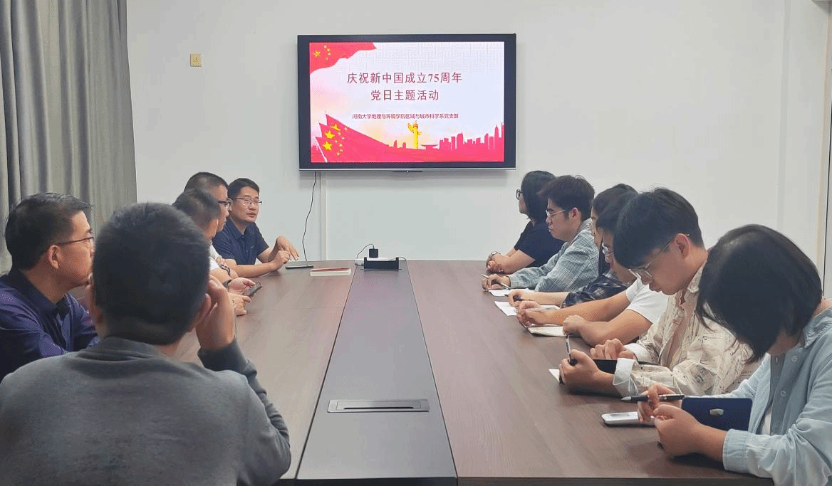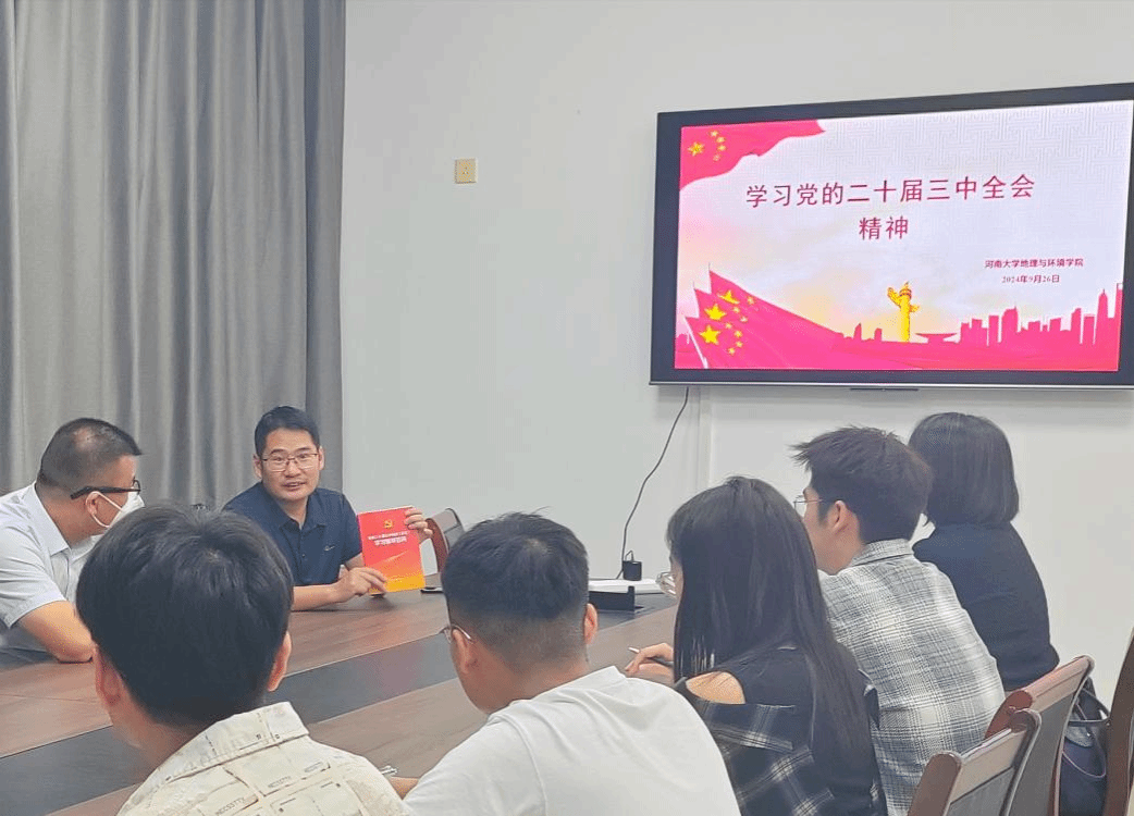 为庆祝新中国成立75周年,进一步学习贯彻党的二十届三中全会精神。9月26日下午,我院区域与城市科学系党支部在人文楼307开展了学习《党的二十届三中全会(决定)学习辅导百问》主题党日活动。本次活动由区域与城市科学系党支部书记丁志伟主持,支部全体党员参加。