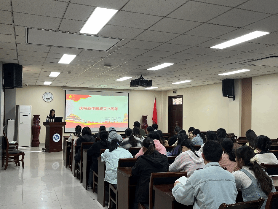 楼二楼报告厅召开以“庆祝新中国成立75周年”为主题的党日活动。会议由支部书记卞荷雨主持,全体党员与部分入党积极分子参会。
