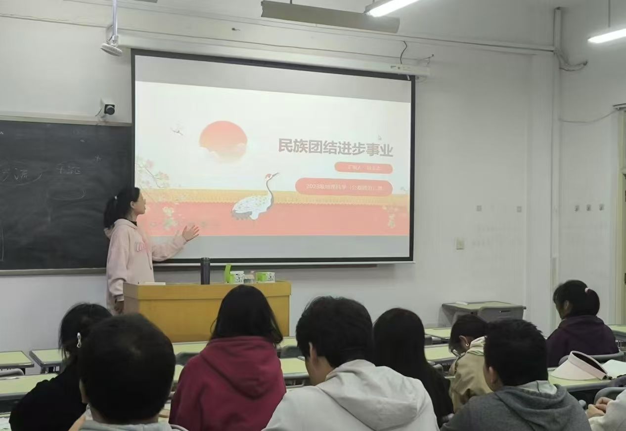 为增强支部团员对民族团结进步事业的认识和理解,提高他们的民族责任感和使命感,10月25日,我院2023级地理科学(公费师范)班团支部在金明综合教学楼5105教室召开以“做民族团结进步事业的栋梁之才”为主题的团日活动。活动由支部书记刘玉洁主持,支部全体团员参加。