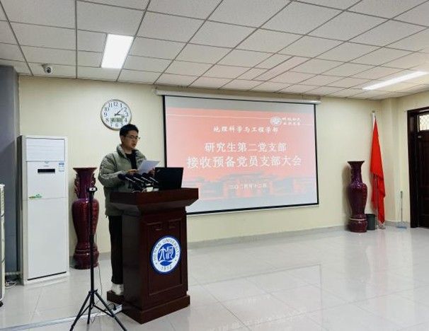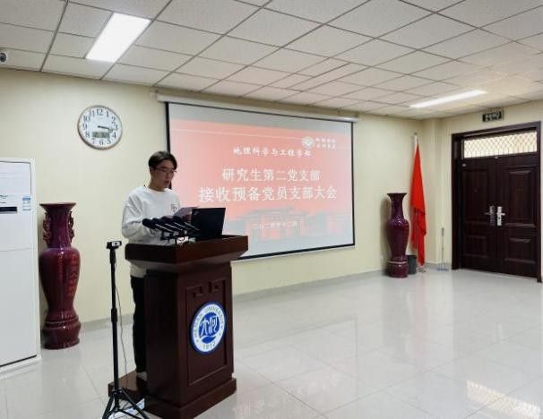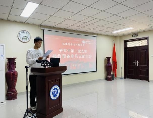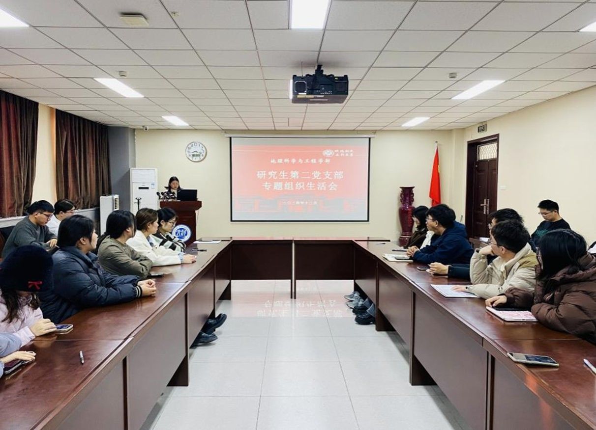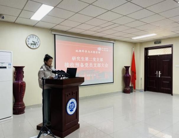 以高质量党建引领一流大学建设的实施意见》(以下简称《实施意见》),引领、培育优秀的党组织后备力量,12月3日下午,我院研究生第二党支部于地学楼二楼学术报告厅召开专题组织生活会暨接收预备党员支部大会。会议由支部书记陆蓉主持,支部党员与发展对象参加此次会议。
