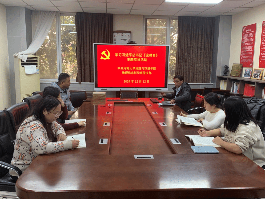 党委安排部署,12月12日下午,地理信息科学系党支部在地学楼二楼党员活动室开展学习习近平总书记《论教育》主题党日活动。会议共分三个阶段进行,并由党支部书记、环境与规划国家级实验教学示范中心副主任闫卫阳主持。