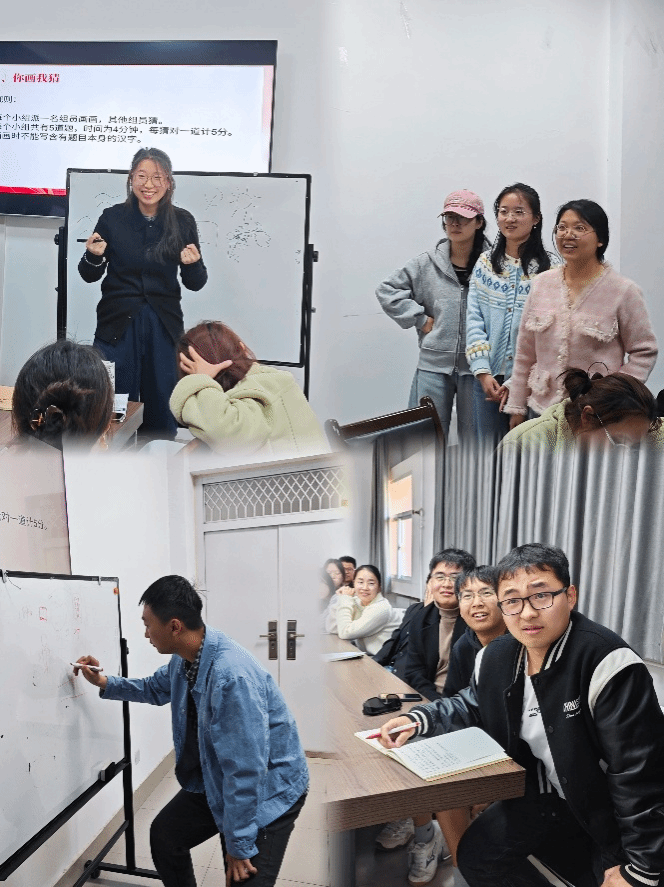 “emoji猜猜猜”环节则更加考验同学们的创造力和联想能力。主持人通过展示一系列表情符号,引导学生们猜测与党史相关的词汇,并说出其背后的历史背景或意义。从“星星之火”到“绿水青山就是金山银山”,从“红军长征”到“四个全面”。让支部党员不仅从生动有趣的比赛中获得了乐趣,还学到了许多党史知识。“你画我猜”环节更是将活动推向了高潮,每个小组派出一名代表上台作画,其他组员根据画作内容猜出与党史相关的词汇。画画的学生用尽心思,猜词的学生绞尽脑汁,现场充满了欢声笑语。同时,支部党员们在欢声笑语中深刻体会到了中国共产党在不同历史时期的重要理念和发展战略。经过三个环节的激烈角逐,最终第五小组凭借出色的表现获得了本次党史趣游活动的冠军。