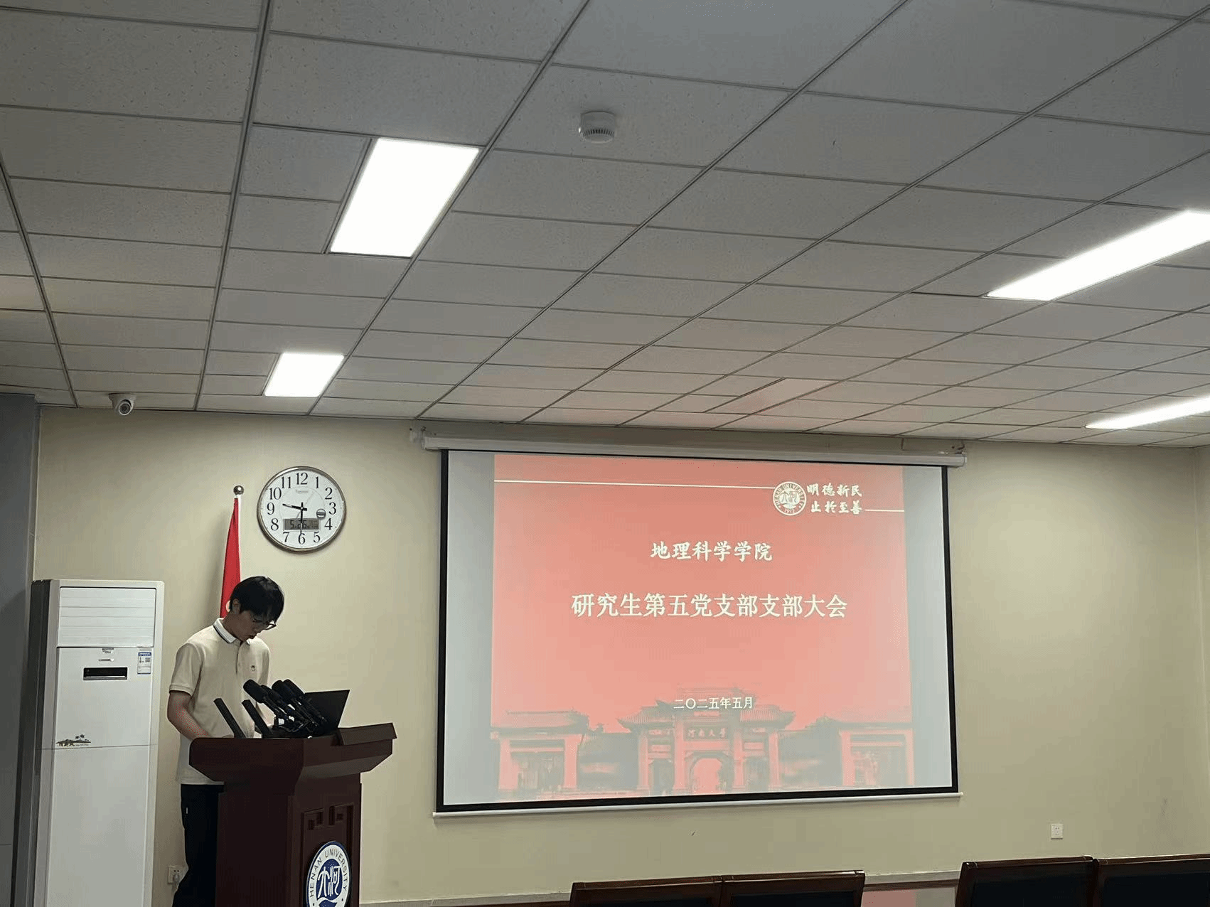 5月26日,我部研究生第五党支部在地学楼二楼学术报告厅召开支部党员大会,讨论王劲草等18名预备党员的转正事宜。会议采取线上线下相结合的方式举行,支部应到党员33人,实到33人(线下30人,线上3人),符合规定人数。会议由支部书记史靓潇主持。