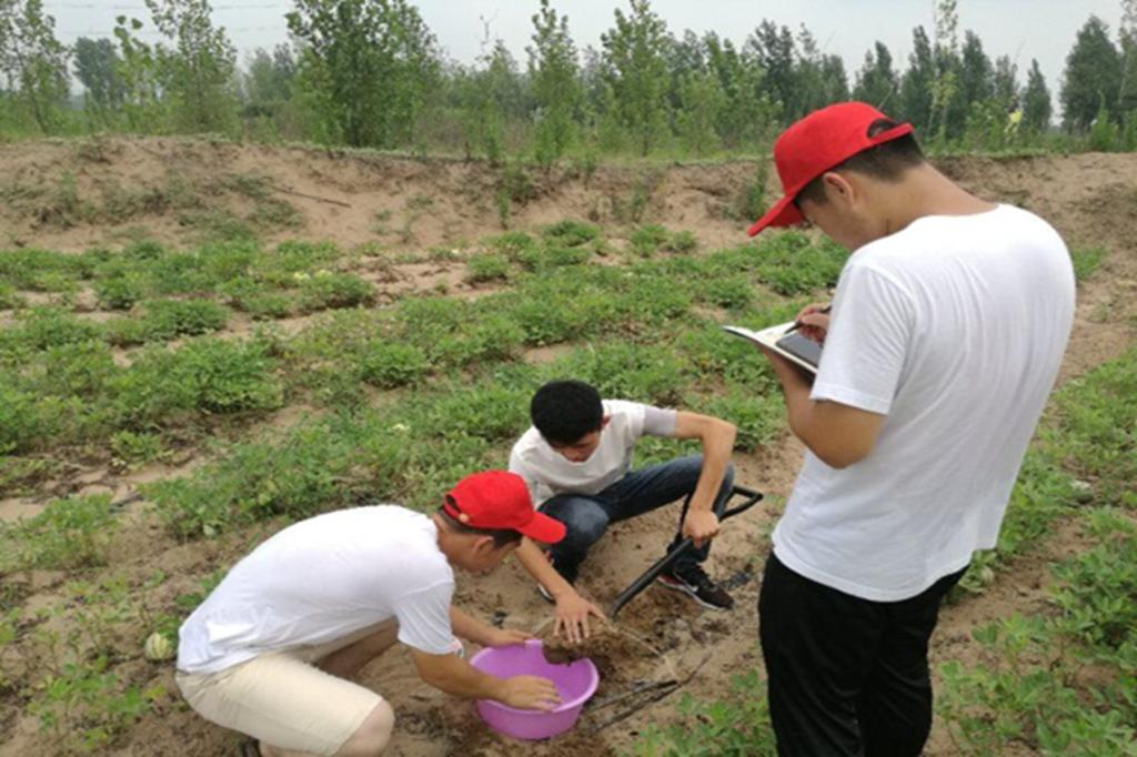 团委书记宋永鹏老师带领的小组深入开封周边乡村,他们根据电子地图对所调查的区域进行分层分幅,将各区域布设均匀的点位详细标注准确的地理位置,并对逐个点位进行采样。他们采集了土壤的样本,而且还带回了当地所种植的小麦、玉米等农作物,以备实验室分析其理化性质和污染状况。