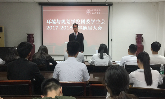 为推动我院团委学生会进一步发展,9月7日晚,我院2017-2018学年团委学生会换届大会在地学楼二楼报告厅举行。我院团委书记宋永鹏及相关老师出席此次大会,三位老师与上届主席团成员共同担任评审。此次大会由学生会组织部部长王晶主持。