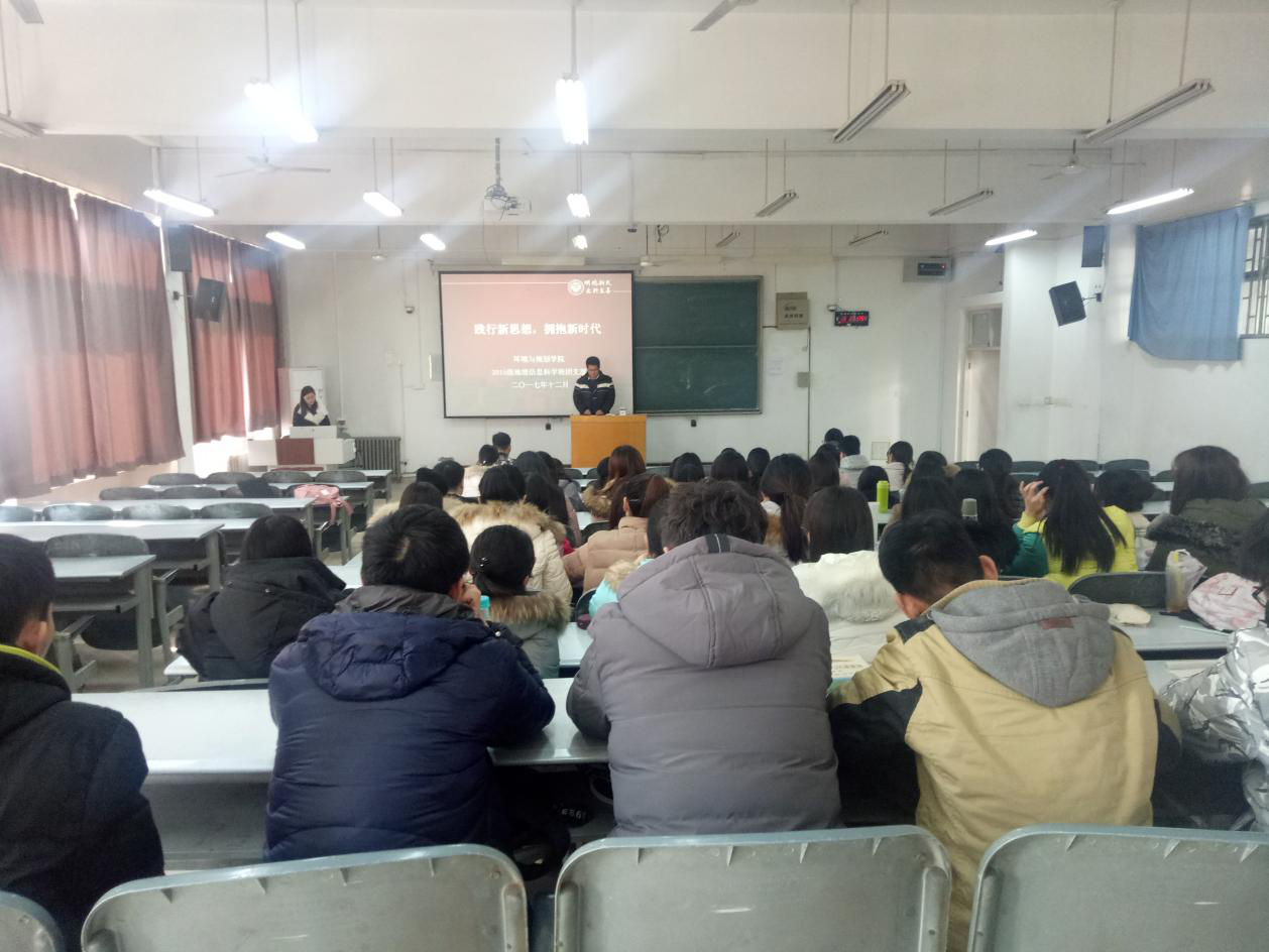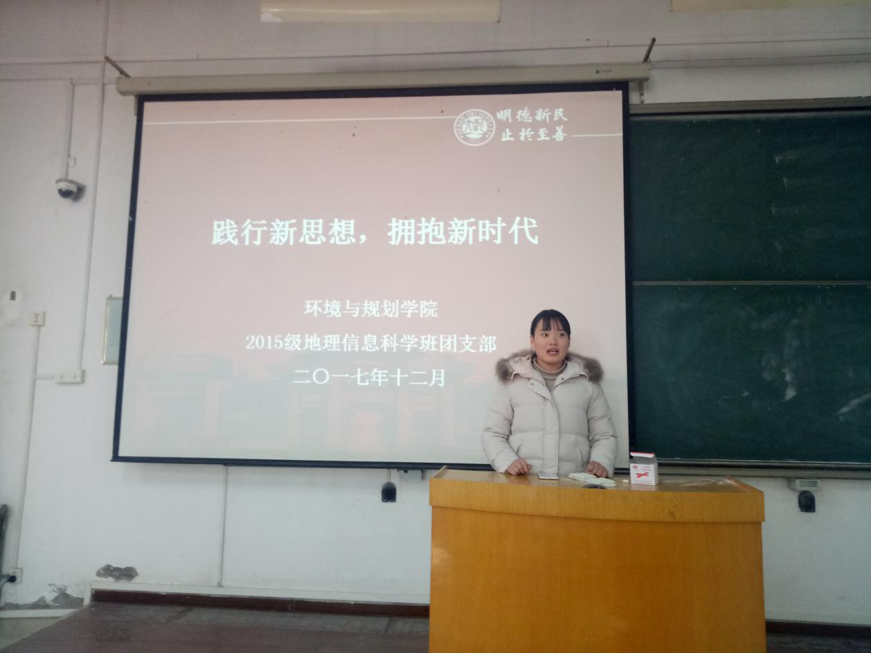 2015级地信班“践行新思想·拥抱新时代”组织生活会在金明综合楼2201教室成功举行。2015级辅导员韩晓静出席本次活动。活动由团支书李倩楠主持。