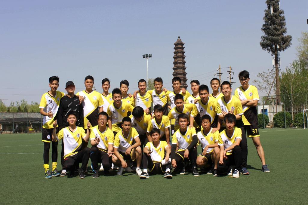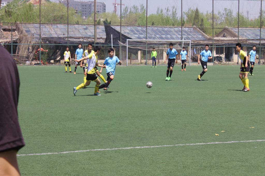 随着裁判一声哨响,比赛拉开帷幕。开场不久,对方获得一个近距离任意球机会,对方球员主罚任意球钻入死角,我院暂时以0比1的比分落后。但我院球员并未因此气馁,转而发动猛烈反击。我院球员在一次边路传中直入禁区,对方在拼抢中手球犯规,裁判直接判罚点球,我院队长薛子成主罚点球轻松命中,我院扳平比分。在此振奋人心的一球过后,我院场上的攻势愈发猛烈,场下掌声此起彼伏。此后,我院又获得数次良好射门机会,给对方造成很大威胁。对方防守逐渐被瓦解,我院形成围攻之势。薛子成也乘机抓住对方防守失误,一脚精准远射直接朝球门飞去,对方门将不及回防扑救,只能看着皮球钻入球网,我院比分反超。战况愈演愈烈,而就在上半场即将结束的时候,我院获得一次角球机会,我院右边锋俞峥天后点头球将球送入球网,我院再下一城,以3比1的比分领先结束上半场。下半场开始,双方都做出换人调整。对方下半场显然加强了进攻,我院防守队员多次化险为夷。然而,一次进攻中对方前锋在我方大禁区突施冷箭,球打到门柱弹入球网,对方追上一分。随后双方展开激烈对攻,僵持下再无进球。比分最终也被定格在了3:2。