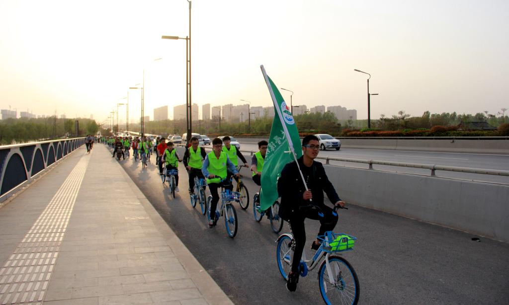 此次骑行活动属于我院2018年4.22地球日系列活动的前期宣传部分,呼吁学生参与低碳出行,向社会普及绿色理念,用实际行动让环境保护意识更加深入人心。
