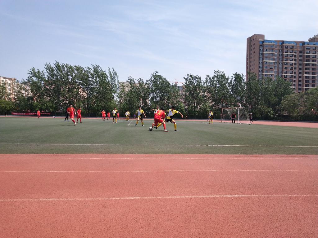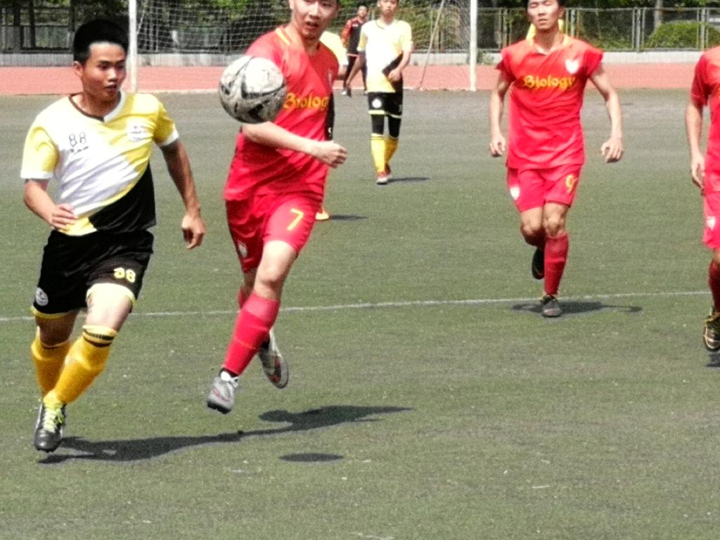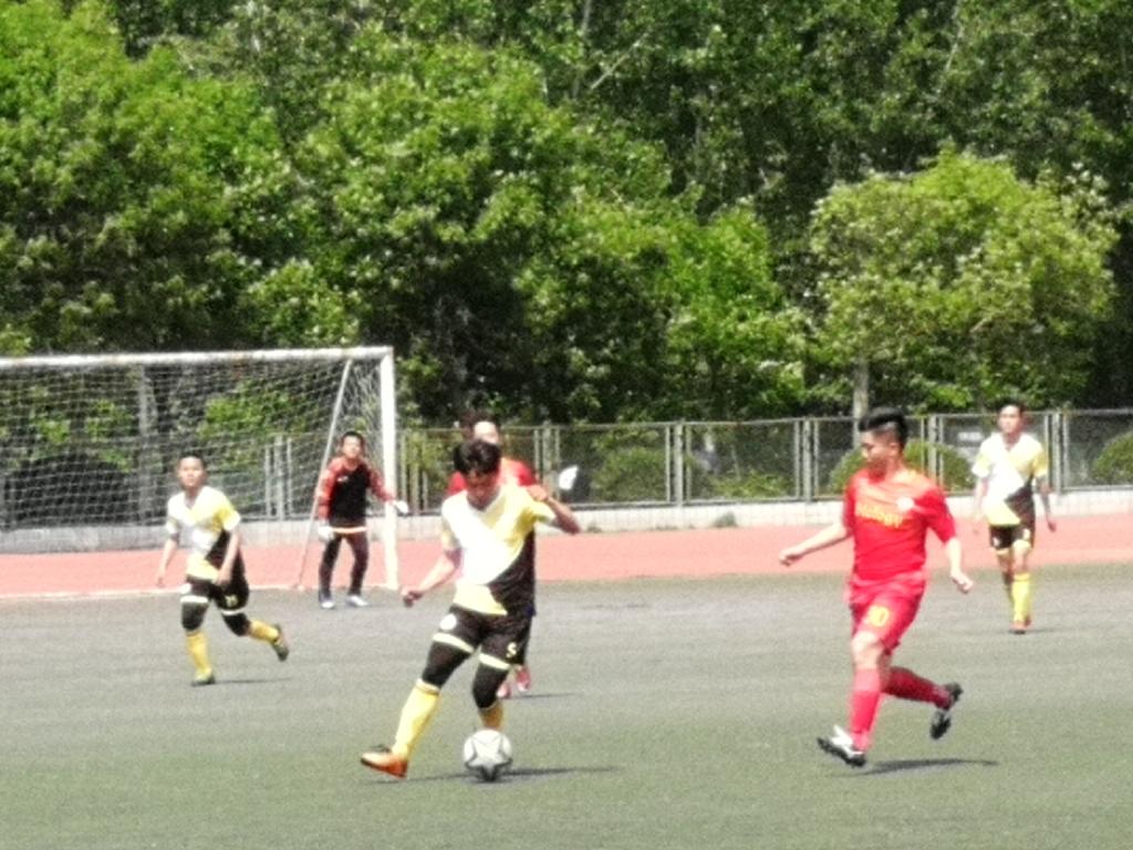 以C组小组第一出线,我院以D组第二出线,然而我院在比赛中却不落下风,给观众呈现了一场精彩的比赛。上半场伊始,我院队员便通过几次精妙的配合撕开对手的防线,一度掌控了场上的局势,创造了连续的边线球与角球机会。临近上半场结束时,我院再次获得角球机会。队长薛子成将球开向远点,前锋王闯巧妙摆脱对方防守人员,准确预判皮球的运动轨迹,抢到一点,头球破门,比分被改写为1:0。这个打破僵局的进球使比赛提早进入白热化阶段,下半场对方进攻强度加大,但我方后卫防守稳健,没有给对手太多的机会。随着裁判员一声哨响,吹响了终场比赛的哨声,最终比分定格在1:0,我院成功赢下了本场比赛。