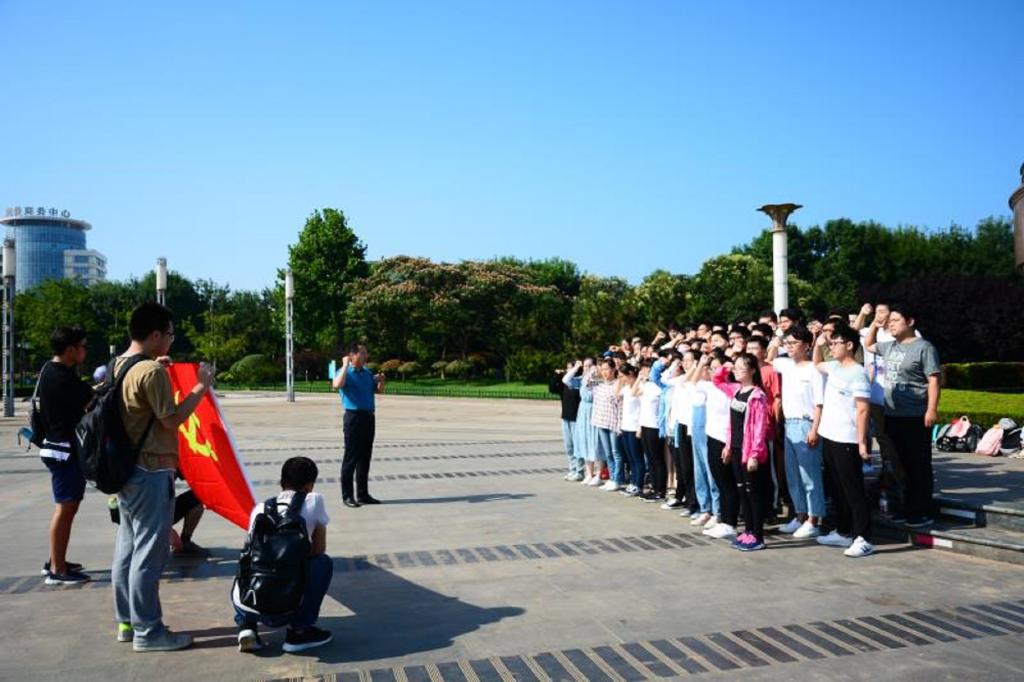 “我志愿加入中国共产党,拥护党的纲领,遵守党的章程……”在日照实习队队长赵威老师的带领下,4名正式党员、9名预备党员面向党旗宣读入党誓词,40余名入党积极分子面向党旗庄严宣誓:刻苦学习、奋发图强,不忘初心、牢记使命,在新时代征程中建功立业。一双双坚定的眼神眺望灯塔矢志不移,一句句庄重的誓言伴随海浪绵延回荡。