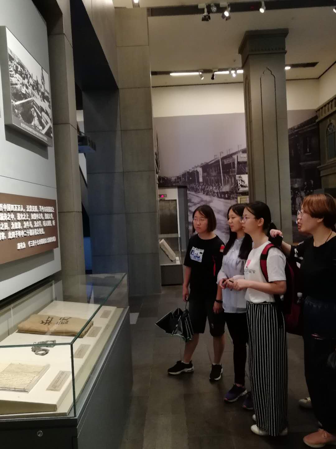 在“复兴之路”展厅,大家回顾了1840年鸦片战争以来,在列强入侵、民族危亡的情况下,中华民族历经千难万险积极探索复兴之路的苦难与辉煌。一件件珍贵文物、一张张历史照片,静静地诉说着中国沦为半殖民地半封建社会的惨痛历史,爱国志士在寻求救亡图存道路上的种种探索,中国共产党领导全国各族人民争取民族独立、人民解放、国家富强、人民幸福的光辉历程。在参观过程中,大家的心情也随历史的发展而跌宕起伏。针对国史党史中的疑惑与不解之处,同学们积极讨论,踊跃提问,韩晓静老师一一耐心解答,详细生动地讲解了历史背后的故事,尤其是为寻求民族独立、人民解放而奉献生命的无数仁人志士和民族脊梁的感人事迹使大家深受触动。