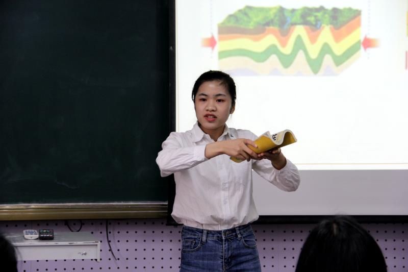 经过初赛的选拔,15名选手脱颖而出,进入决赛。根据比赛规则,选手们需选择与初、高中相关的地理课程进行讲授,限时十分钟。赛前,参赛选手们积极调整自身状态、回忆专业术语、反复检查材料,以期达到自身最佳水平。比赛中,各位选手紧密围绕教学目标,语言自然流畅、仪态端庄大方,在课件与板书的配合下,将现场师生带进妙趣横生的地理课堂。展示结束后,评委老师对选手们的课题选择,内容设置,科学表述等方面给出了客观的点评。他们表示,参赛选手们课程设置合理、深浅适宜,避免了老师单纯讲,学生单纯听的教学固有模式,打破常规,精心设计了师生互动过程,很好地活跃了课堂氛围。对选手们的表现给予充分的肯定。