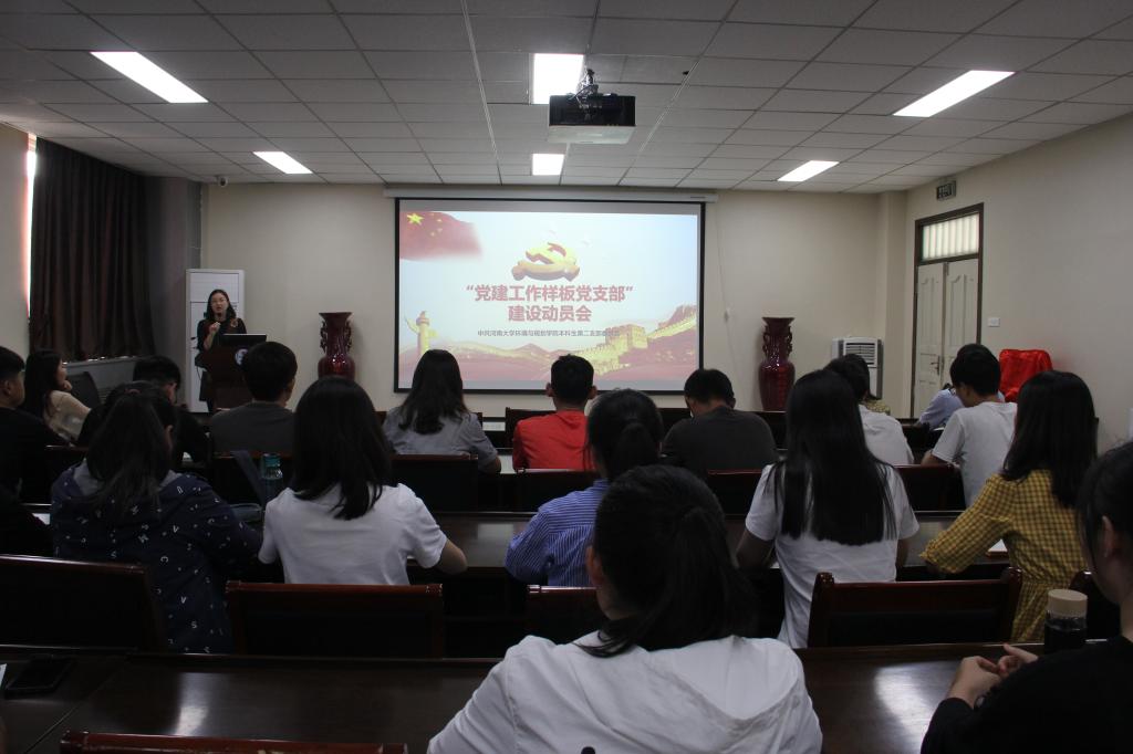 二楼报告厅召开“党建工作样板党支部”建设动员会。本科生第二党支部书记韩晓静老师、宣传委员兼纪检委员徐小军老师、组织委员赵越老师、支部全体党员和入党积极分子代表参会。会议由韩晓静老师主持。
