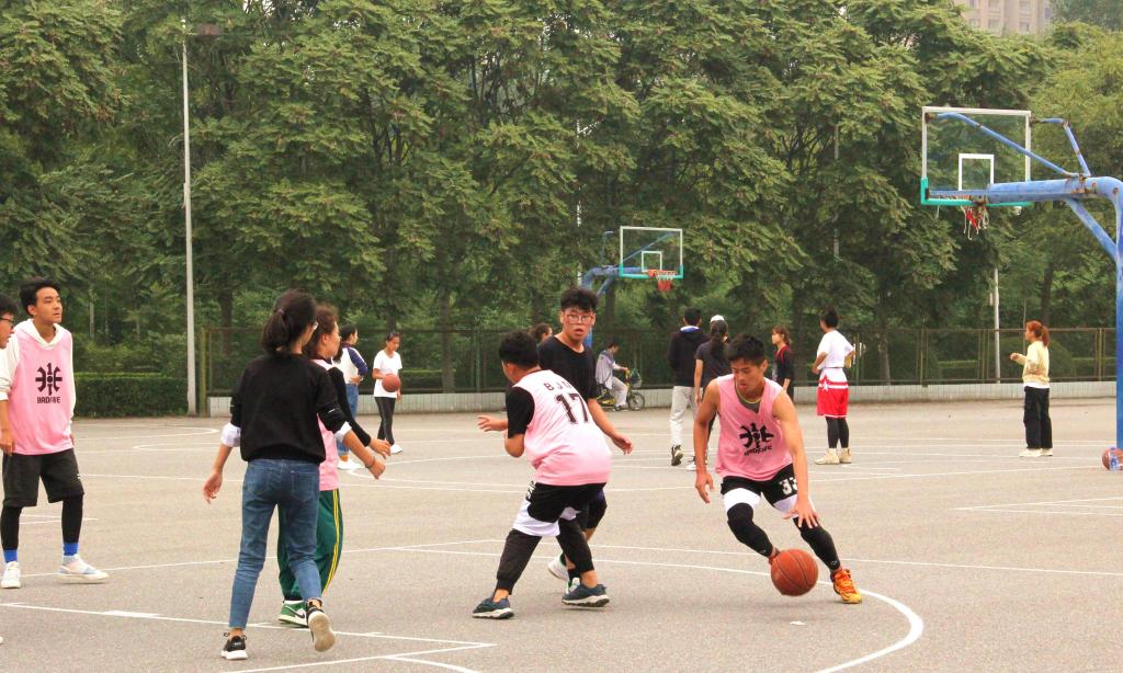 在金明校区华苑篮球场举行2019级 “迎新杯”篮球比赛。成人漫画