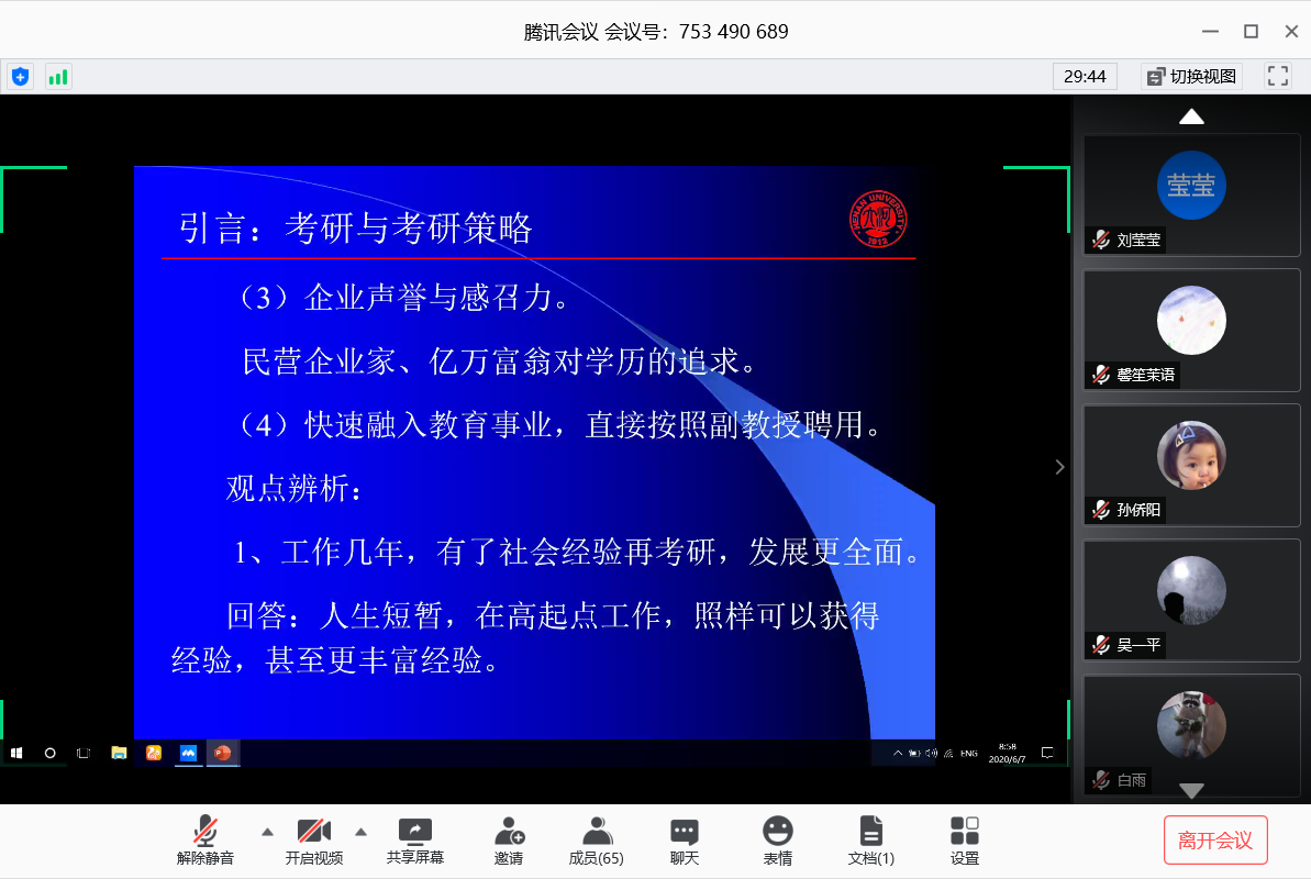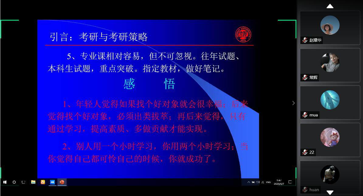 地理信息科学专业考研经验交流会准时在线上开展,考研交流座谈会由地理信息科学系主任闫卫阳主持。
