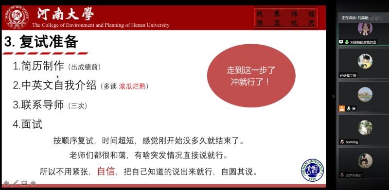 疫情阻挡了返回学校的脚步,却不能阻挡学习的脚步,不能阻挡时间流逝的脚步。此次考研经验交流会,使同学们对考研过程有了一个更具体、 更清晰的认识,为正在备考的同学提供宝贵的复习经验,同时也为尚且迷茫的同学们指引了正确方向。