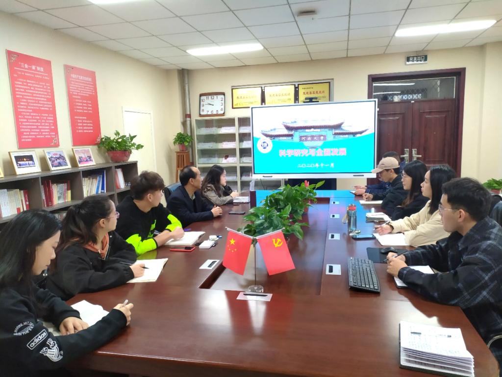 会议分为两部分。首先,陈太政老师针对研究生党支部在推进“科研育人”工作中的作用及成效讲了三个问题。第一,分析目前高校科研育人存在的不足。高校对于研究生的培养工作普遍存在偏重科研、脱离育人谈科研的倾向,注重专业学科知识性的 “显性教育”,而价值性的“隐性教育”相对弱化。第二,阐释了研究生党支部构建的“科研育人”体制机制。结合育人目的,执行全程化导师和辅导员融合的“1+1”育人模式,并构建起导师与辅导员协同培养的育人团队。同时,依托我院地理学专业的特点和导师的课题项目,分主题搭建科研训练育人平台。第三,进行未来工作展望。积极推动“党建—科研—育人”协同发展模式的探索,夯实党务工作基础,提高党建工作规范化、科学化水平。随后,同学们积极分享在“科研育人”培养模式下的学习收获和生活感悟,同时也袒露了自己现阶段的纠结和诉求,陈老师为每一位同学进行答疑。