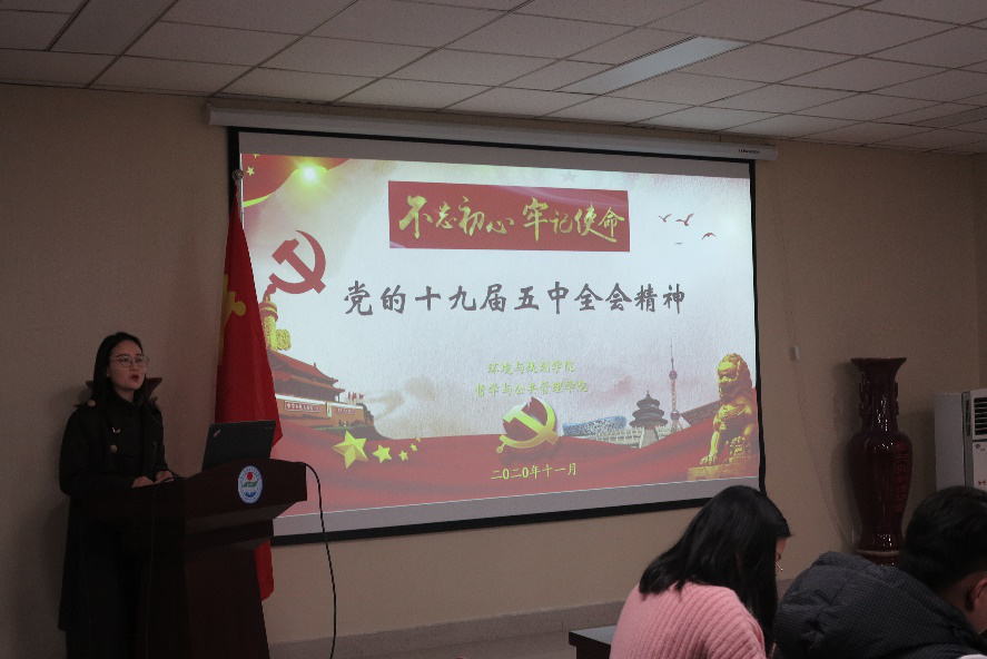 活动认领践学,让党建引领凝聚红色动力。梁一梦分享了不同党员同志立足自身的研究领域对十九届五中全会的不同剖析,她认为,作为一名研究生党员,更应该充分运用自己的学科知识为国家建设添砖加瓦,并提出对五中全会中提出的“十四五”时期经济社会发展主要目标的一些思考。