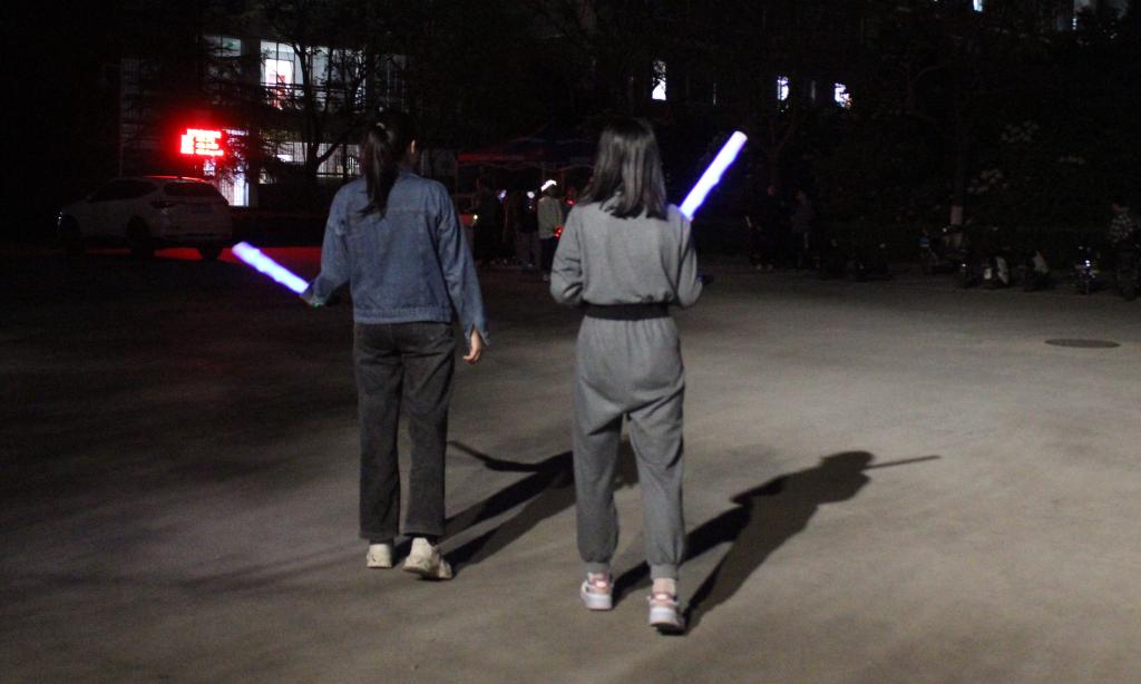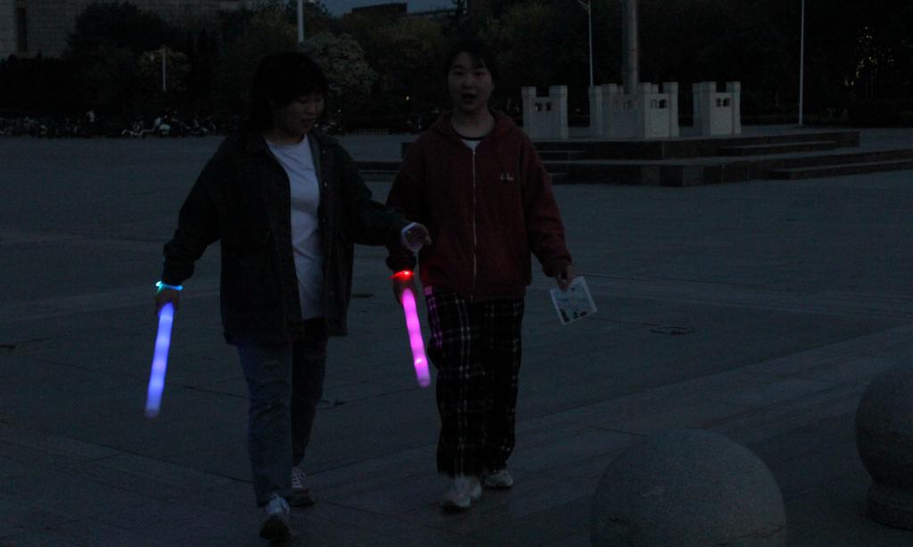 门口起始点集合,领取并佩戴荧光棒、荧光手环或荧光戒指,然后绕中州路环线进行慢跑。奔跑着的五彩荧光队伍将校园装点成一个荧光闪耀的欢乐海洋,吸引了许多人的目光。