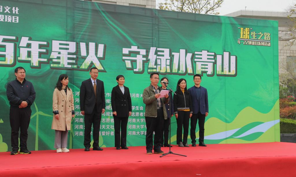 王友成为环保志愿者授旗,随后,郑洪涛宣布"球"生之路—4.22地球日系列活动正式启动。