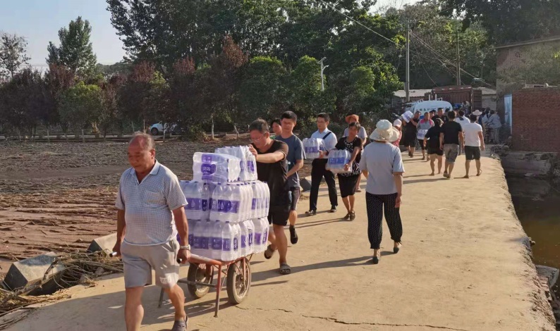 协同省地理学会号召老师们捐款捐物、奉献爱心,先后募集资金2.1万余元。7月26日,米河镇交通基本恢复,相关老师紧急协调采购饮用水、食品等生活物资,并于当天下午辗转三个多小时,将一大车救灾物资送到了米河镇米北村乡亲手中。
