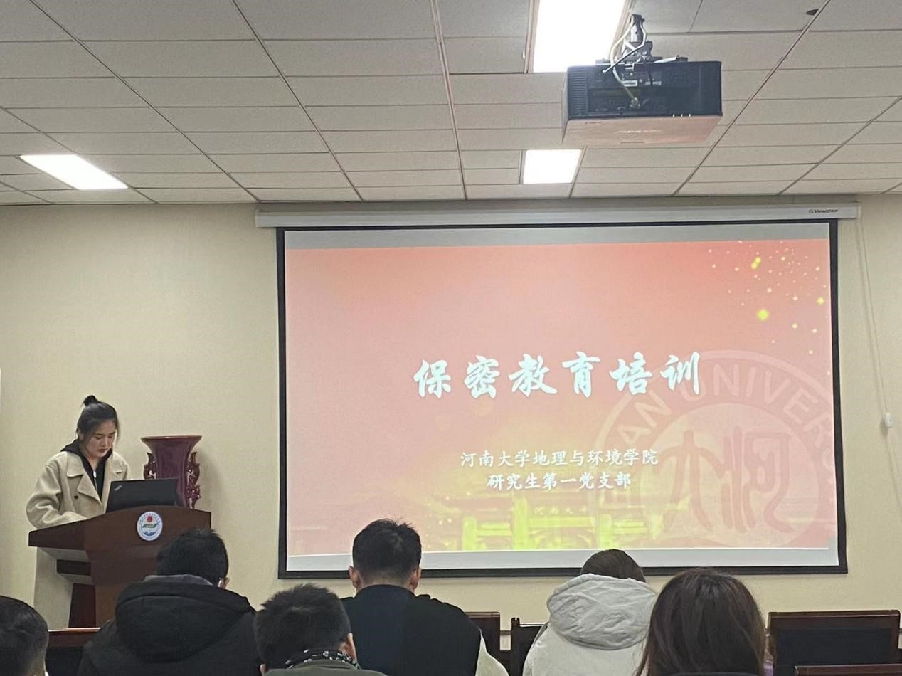 二楼报告厅召开“保密教育”培训会议,会议由研究生第一党支部组织委员田卡吨同志主持。