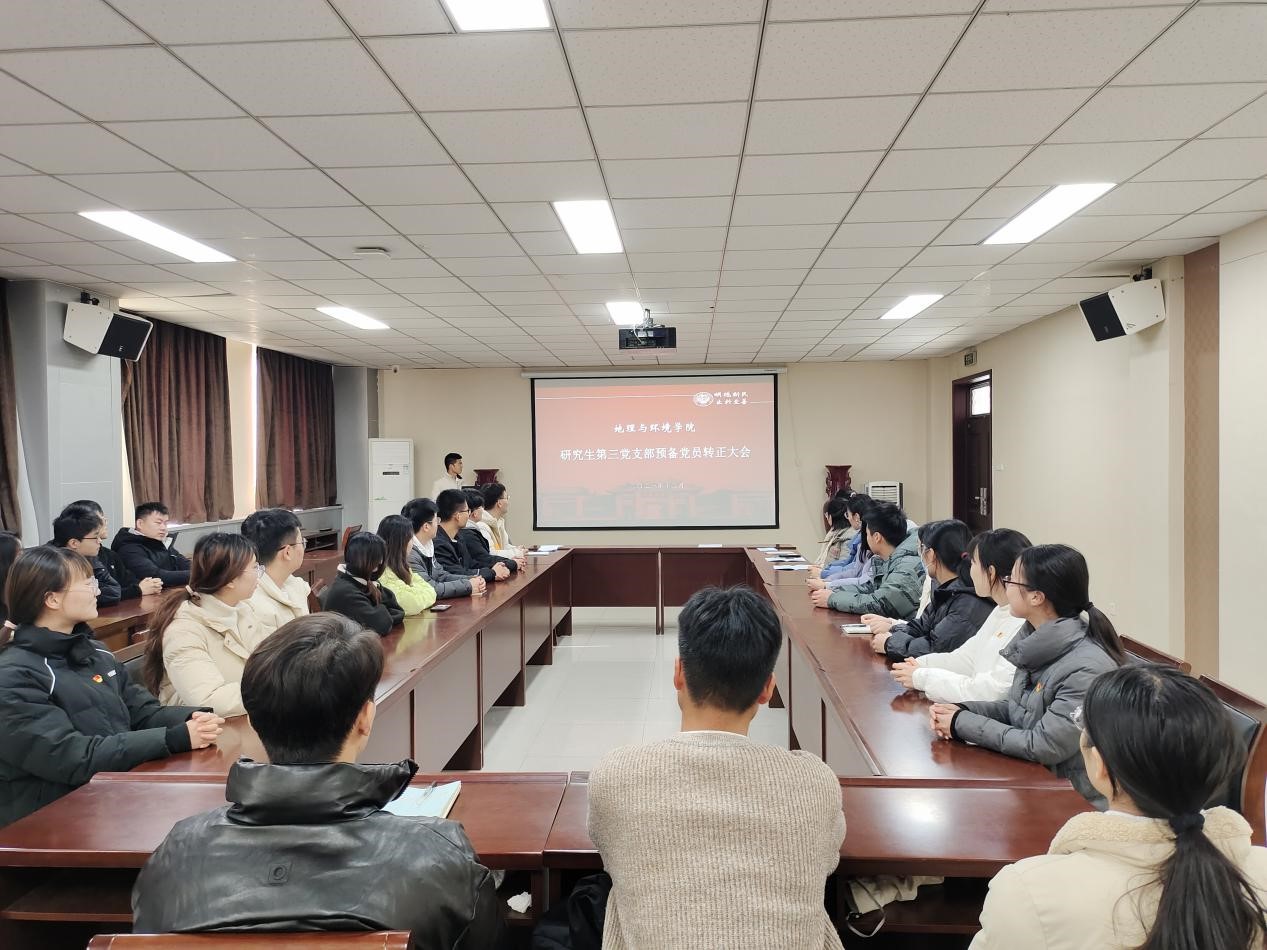 二楼报告厅召开预备党员转正大会,参加会议的有研究生第三党支部全体正式党员和预备党员,会议由研究生第三党支部书记李万隆主持。