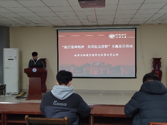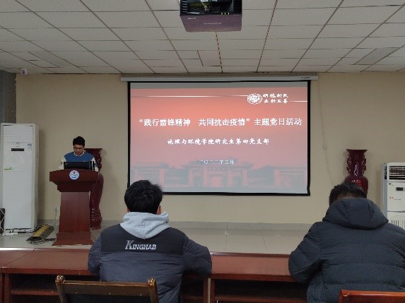 活动伊始,同学们认真观看了系列短片《习近平讲述的故事丨雷锋,永恒的精神坐标》,随后朱慧儒进行总结发言,雷锋精神代表着一名党员先进的思想修为,代表着崇高的共产主义精神品质,作为一个党员,我们要大力弘扬雷锋精神,牢记“全心全意为人民服务”宗旨,从身边小事做起,充分发扬“螺丝钉”精神,勤勤恳恳、扎扎实实,努力做好手头上每一件事情。接下来,我们身边的弘扬雷锋精神的代表、在抗击疫情中积极奉献的两位志愿者进行发言,他们的言行充分展现了当代研究生的良好精神风貌。
