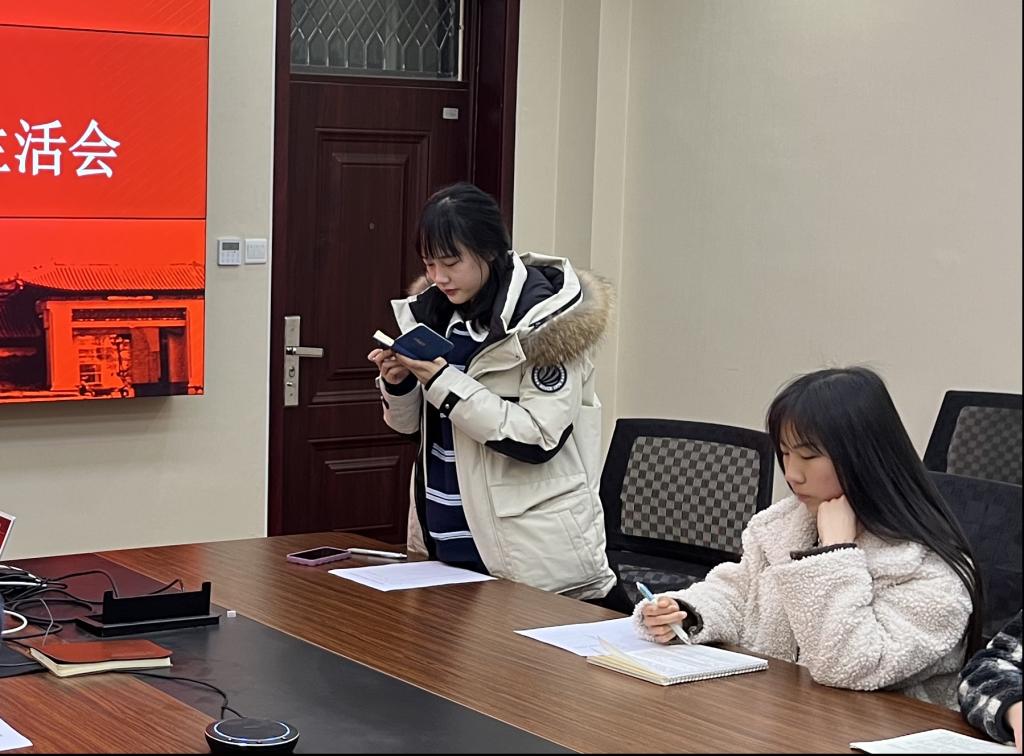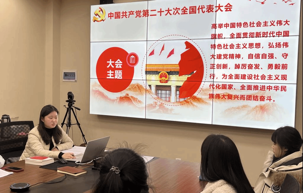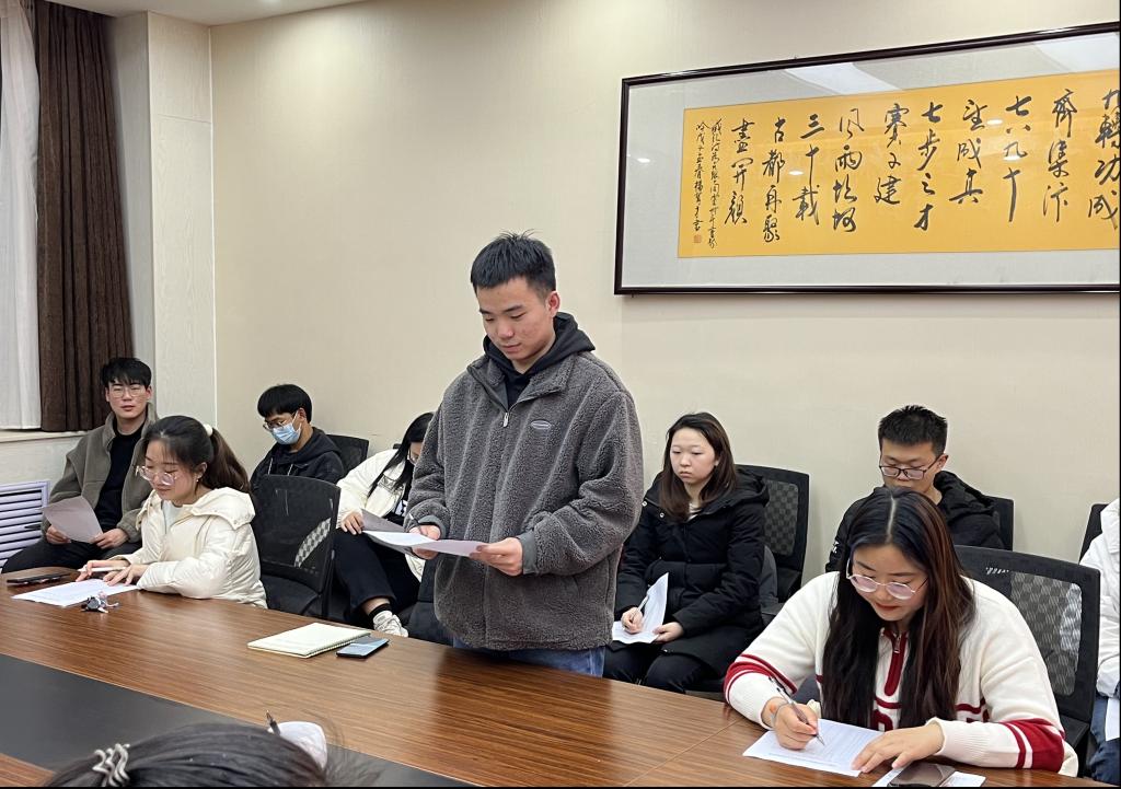 会议开始,支部书记陆蓉首先带领全体党员继续学习领会了党的二十大精神。习近平总书记对青年寄予深切期望:“青年强,则国家强。当代中国青年生逢其时,施展才干的舞台无比广阔,实现梦想的前景无比光明。”我们作为新时代青年要坚定不移听党话、跟党走,怀抱梦想又脚踏实地,敢想敢为又善作善成,把自己的小我融入祖国的大我、人民的大我之中,与时代同步伐、与人民共命运,立志做有理想、敢担当、能吃苦、肯奋斗的新时代好青年。随后,支部党员们也踊跃分享了自己的学习感悟。李霜认为在国家大兴教育的背景下,我们应该把学习作为首要任务,作为一种责任、一种精神追求、一种生活方式,树立梦想从学习开始、事业靠本领成就的观念,让勤奋学习成为青春远航的动力,努力使自己成为祖国建设的有用之才、栋梁之材,为实现中国梦奉献智慧和力量。