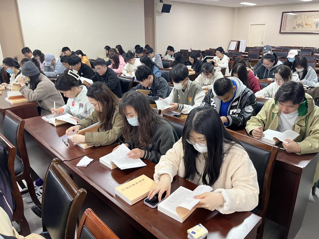 活动伊始,由研究生第二党支部赵静静同志对《习近平著作选读》的出版时间背景、目录章节等进行介绍,并对此次读书分享会选取此本著作的意义进行了解释,该书生动记录了以习近平同志为核心的党中央团结带领全党全国各族人民进行伟大斗争、建设伟大工程、推进伟大事业、实现伟大梦想,推动党和国家事业取得历史性成就、发生历史性变革,开创中国特色社会主义新时代的历史进程,科学总结了我们党领导人民如期全面建成小康社会,迈上全面建设社会主义现代化国家新征程的全过程,是全党全国各族人民深入学习贯彻习近平新时代中国特色社会主义思想的权威教材。