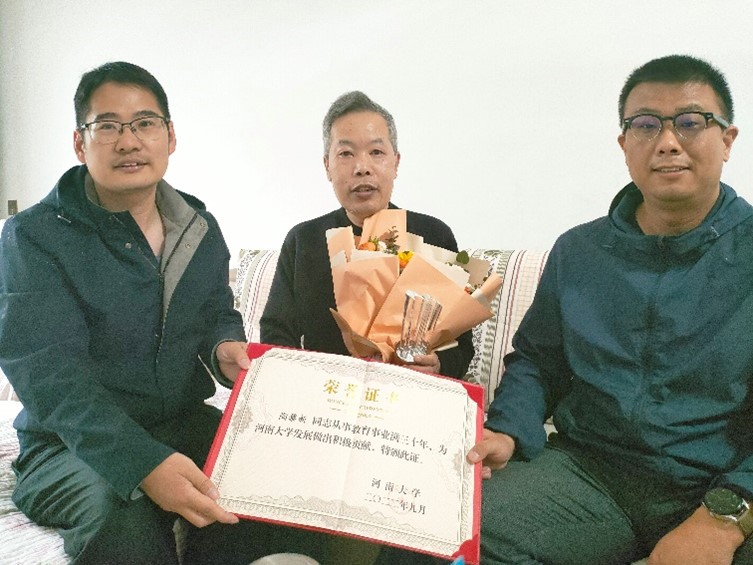 首先,丁志伟播放了区域与城市科学系为从教满三十年教师专门制作的纪录片,全面回顾了受表彰教师三十年的从教历程;其次,徐小军、赵威通过回忆老教师的教科研贡献、点滴生活瞬间,表达了对他们的崇高敬意和内心敬佩;再次,活动举行了表彰仪式,年轻教师为受表彰的老教师颁发了鲜花、证书和奖杯;最后,高建华、秦明周、徐晓霞、陈常优、李二玲五位老师分享了从教经历和科研心得,为年轻老师的快速成长提供了宝贵经验。活动前期,丁志伟、李天奇对因事不能出席活动的陈云增、陶黎新和宋志军老师进行了登门拜访,为他们送上的荣誉证书和成人漫画