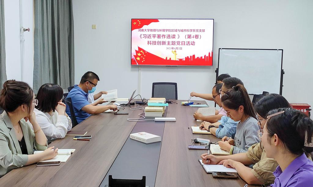 为进一步学习贯彻习近平新时代中国特色社会主义思想,提升科技创新服务于党支部和系室建设的质量。6月2日下午,我院区域与城市科学系党支部在人文楼307开展《习近平著作选读》(第四卷)科技创新主题党日活动。本次活动由区域与城市科学系党支部书记丁志伟主持,支部全体党员参加。