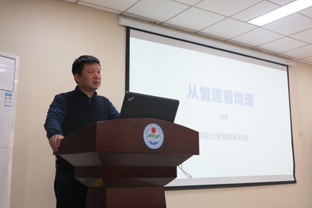 对刘强老师的到来表示热烈的欢迎。随后,刘强老师向同学们传授了自己在读书时积攒的宝贵经验,并将地理学与管理学相结合,从系统导向管理的三个纬度——战略管理、内部管理、外部管理进行了详细讲解,同时围绕区域发展驱动机制、互联网思维等展开了进一步阐述,对创新地域综合体等内容进行了分析。他认为,地理学中的“系统”理论可以运用于很多领域,本科阶段在成人漫画