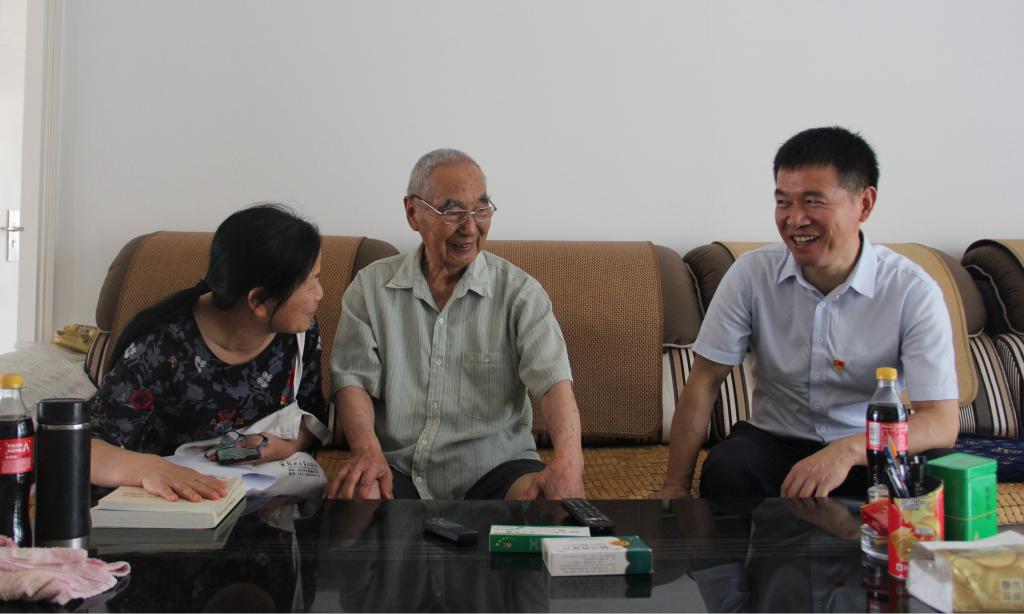 郑洪涛一行人先后走访慰问了金学良、金锡炎、丁兰璋、袁立海、王西川五位老党员,向他们致以亲切问候和美好祝福并送上慰问礼品和党史学习用书。郑洪涛代表党组织为金锡炎、王西川两位老同志颁发“光荣在党50年”纪念章。
